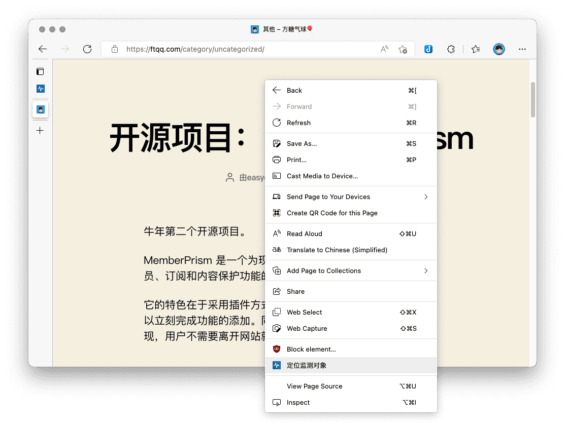 After installing the plugin, open the webpage you want to monitor, right-click on the page, and youāll see the āLocate Monitoring Objectā option.