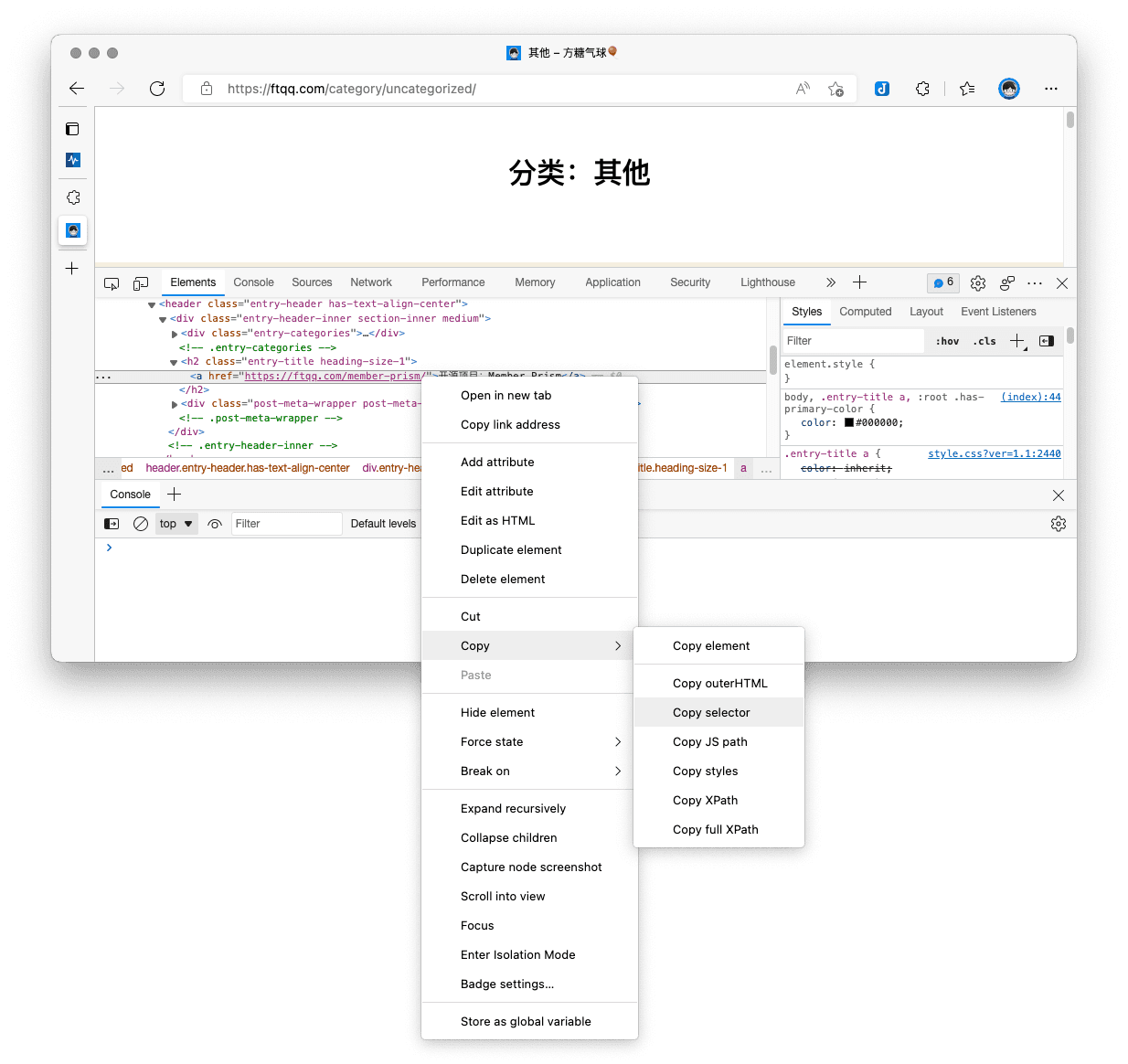 ā” The developer tools will automatically open and select the corresponding line in the source code. Right-click on the highlighted line, select āCopyā ā āCopy selectorā